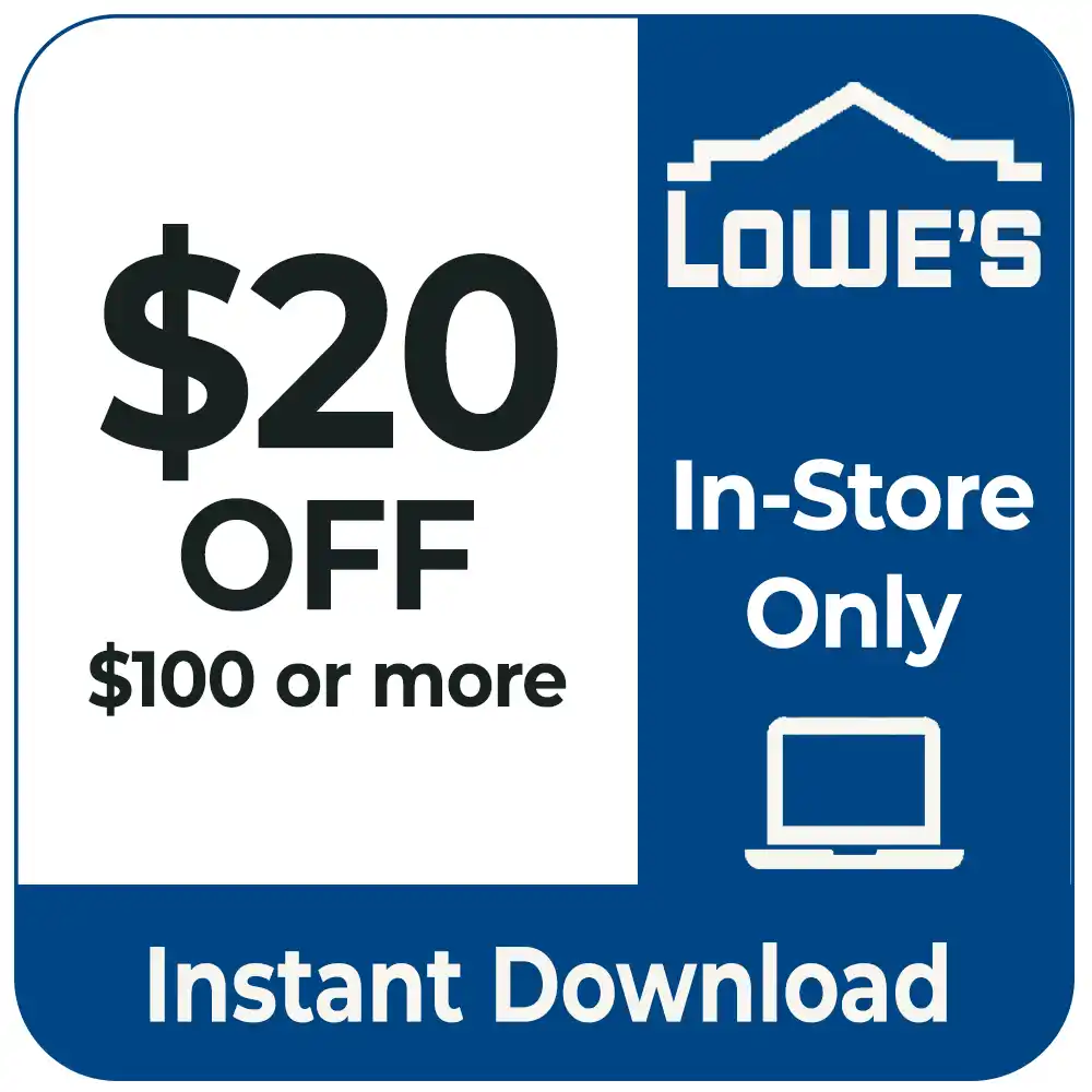 This $20 Off $100 Lowe’s Coupon is valid for in-store purchases only. Each coupon is single-use and applies to eligible in-stock or special-order merchandise on a $100+ single receipt (before tax and after applicable discounts). A scannable barcode is included for quick checkout.