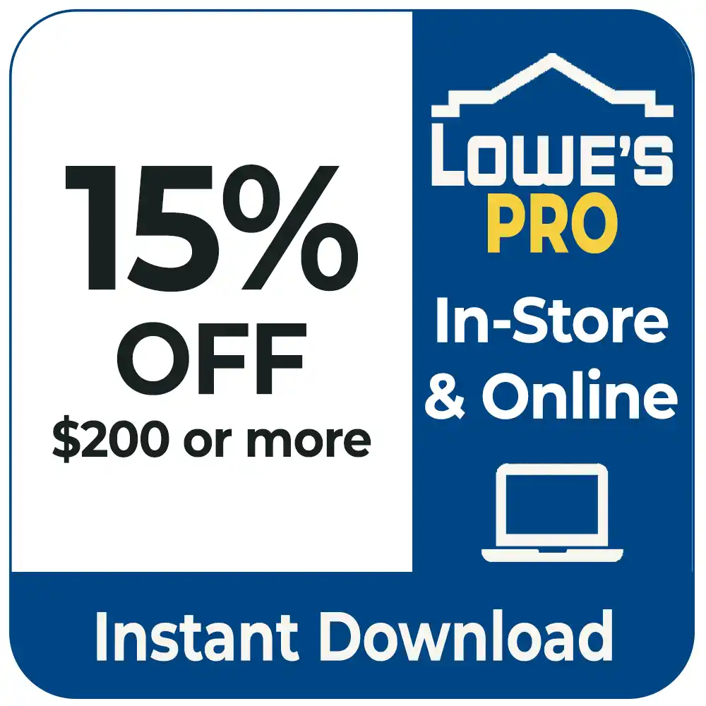 One-time use promotional coupon. Good for 15% off a single purchase of $200+ (before taxes & after applicable discounts) when used with a Lowe’s For Pros account. Discount is applied across eligible items; the discount on any item cannot exceed its selling price.