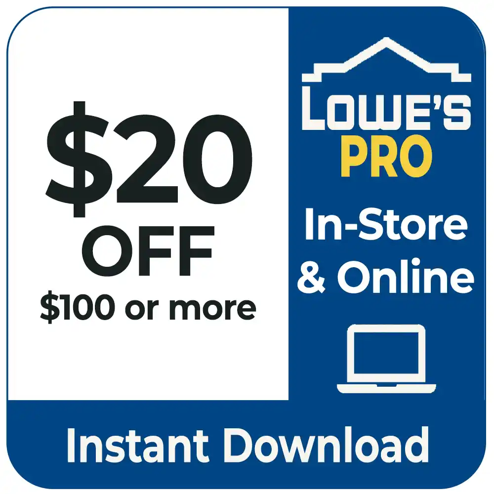 This $20 Off $100 Lowe’s Coupon gives you fast savings on eligible purchases of $100 or more. Redeem it in-store at checkout or apply it online at Lowes.com with a Lowe’s For Pros account, giving you flexibility on where to redeem.